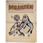 WRÓBLE na DACHU: satirical and humor weekly. Krakow; Warsaw: Spółka Wydawnicza "Kuryer". r. 8, 1937: nos. 6, 8, 10-13, 15, 17, 18, 20, 21, 24, 25, 27-31, 33, 34, 36-39, 41-43, 45, 46. 31 cm, total period binding: fawn. 29 complete nos. listed above, besides that there are incomplete nos. with fragments cut out or one or two k. missing: nos. 2-5, 32, 47-52. Bindings with small cracks on the ...